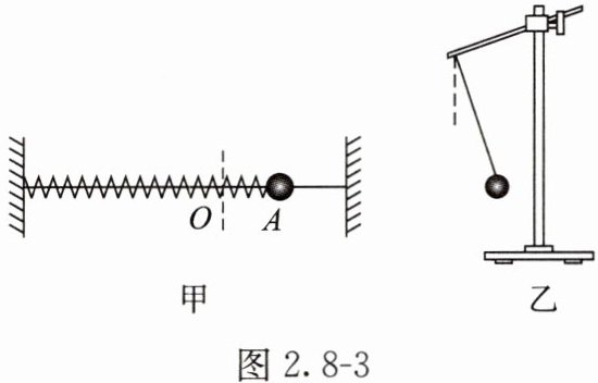 3. (2022·浙江1月)图2.8-3甲中的装置水平放置,将小球从平衡位置O拉到A后释放,小球在O点附近来回振动;图2.8-3乙中被细绳拴着的小球由静止释放后可绕固定点来回摆动。若将上述装置安装在太空中的我国空间站内进行同样操作,下列说法正确的是( )。