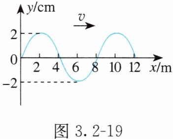 3. 一列沿 $ x $ 轴正方向传播的简谐横波,波速为 $ 4 \, m/s $。某时刻的波形如图 3.2 - 19 所示,下列说法正确的是( )。