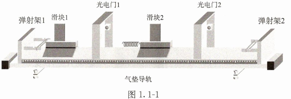 例题1 某同学利用气垫导轨做“寻求碰撞中的不变量”的实验。所用的气垫导轨装置如图1.1-1所示,由气垫导轨、滑块(含挡光片)、弹射架、光电门等组成。