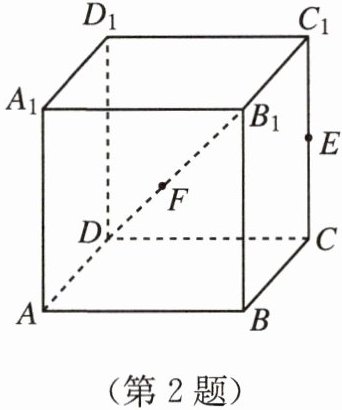 2. 如图,在正方体 $ ABCD - A_1 B_1 C_1 D_1 $ 中,$ E $ 为棱 $ CC_1 $ 的中点,点 $ F $ 在线段 $ DB_1 $ 上,且 $ 3 DF = 2 FB_1 $.