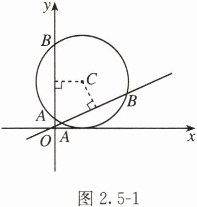 如图 2.5 - 1,直线被圆 $ C $ 截得的线段 $ AB = 2\sqrt{3} $. 由垂径定理可得圆心 $ C $ 到直线 $ AB $ 的距离 $ d = \sqrt{4 - 3} = 1 $.