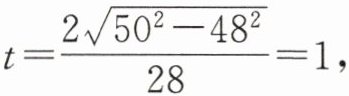 $ t = \frac{2\sqrt{50^2 - 48^2}}{28} = 1 $,