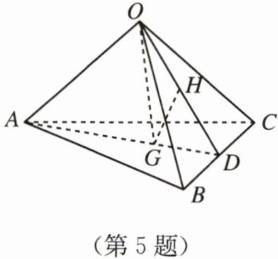 5. 如图,在空间四边形 OABC 中,点 G 为△ABC 的重心,D 为线段 BC 的中点,H 为线段 OD 的中点.