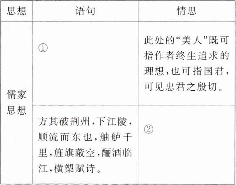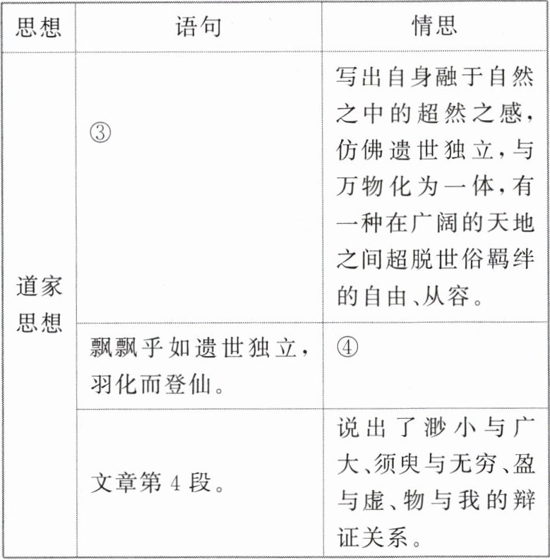 4.①渺渺兮予怀,望美人兮天一方。②借客之口,由眼前之景想到曹操戎马一生,流露出对曹操的崇敬和仰慕之情。③纵一苇之所如,凌万顷之茫然。④渴望凌空驾风,超尘出世,顺乎自然,获得精神的超脱。