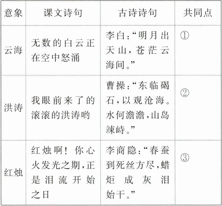 5. 诗歌意象的内涵具有一定的延续性,请联系古诗中的相关意象,填写下表,新旧关联,以诗解诗。