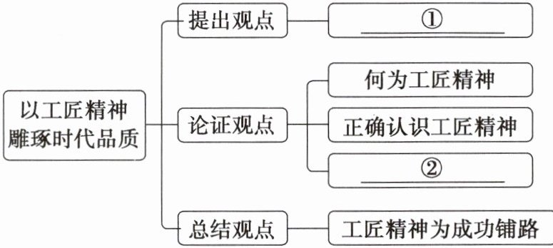 本文的5个段落是如何围绕工匠精神展开论述的?请通读全文,初步感知行文内容和结构,填出下面结构导图中的空缺部分。