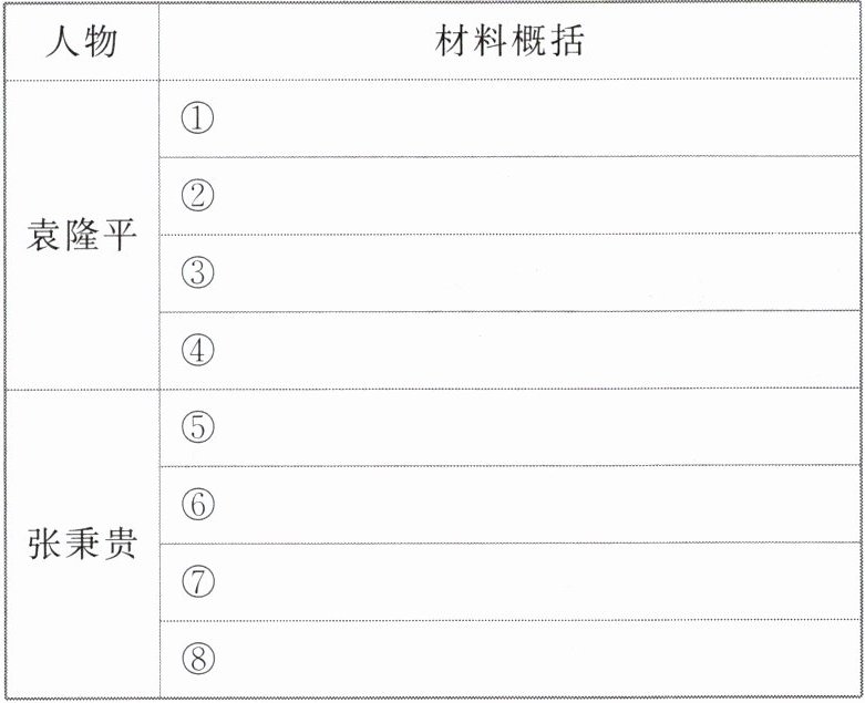 3.①立志战胜饥饿,发现“天然杂交稻”的杂种第一代 ②挑战世界性难题,寻找并发现“天然雄性不育株” ③捍卫农民福祉,以事实回应贬斥杂交水稻的观点 ④规划并培育超级水稻,引领杂交水稻走向世界 ⑤接待抱着小孩的女顾客,照顾赶车却排在队尾的顾客 ⑥耐心开解不讲道理的女顾客,女儿病重还以笑容迎接顾客 ⑦起初因照顾买得多的顾客、忽略了买得少的顾客被质问而深受触动,为面带病容的顾客选糕点,回忆被国民党兵痞打骂 ⑧利用业余时间到糖果厂参观,到医院向医生学习营养知识等 ⑨青少年时期,勇敢追求喜欢的专业与幸福的婚姻 ⑩作为植物学家,长期到西藏收集种子,并成为援藏干部 ⑪致力于科普工作,与自然博物馆、科技馆合作,并撰写、翻译科普著作,为中小学生义务进行科普 ⑫对转导师的学生“接盘”与“兜底”,为学生定制个性化的发展规划,鼓励并帮助少数民族地区学生报考自己的研究生 ⑬长期超负荷工作,不断探寻生命的边界 优秀精神品质:三位典型人物身上都能体现出时代精神:袁隆平勇立潮头、引领“绿色革命”的创新精神;张秉贵爱岗敬业、全心全意为人民服务的“一团火”精神;钟扬勇于担当、甘于奉献,不断探求生命的价值与意义的“探界者”精神。