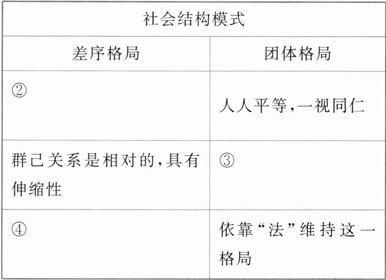 5.①西洋社会的结构模式 ②维系着私人的道德 ③团体界限分明 ④依靠“礼”维持这一格局