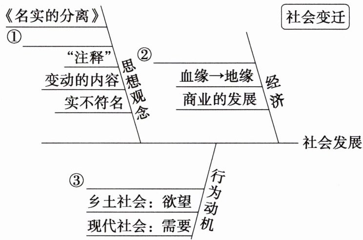 7. 第十二至十四篇围绕“时势权力”这一随着时间推移和社会变迁而改变的权力展开论述。请填写下面思维导图中的空缺部分,完整呈现它们的关系。