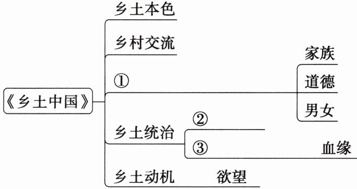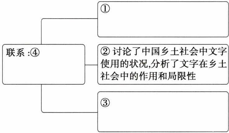 (1)①阐述了中国乡土社会的本质特征,即以土地为依托、以家族为中心、以村落为单位的自然经济形态 ③进一步探讨了文字在乡土社会中的普及问题,分析了文字普及的难点 ④乡土社会土气的本色决定了其不需要文字的文化特点