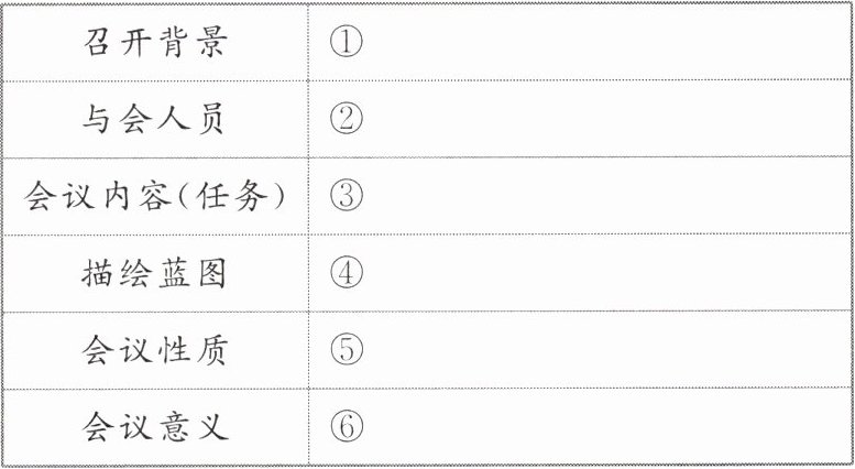 1.①召开这次会议的基础 ②会议的性质和任务 ③会议的意义 ④规定建国的方针、路线 ⑤中华人民共和国成立后的建设任务