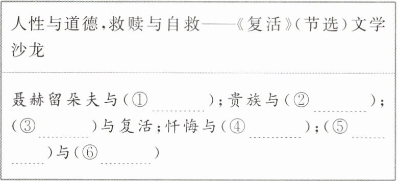 1.①玛丝洛娃 ②平民 ③泯灭 ④犯罪 ⑤肉体 ⑥灵魂