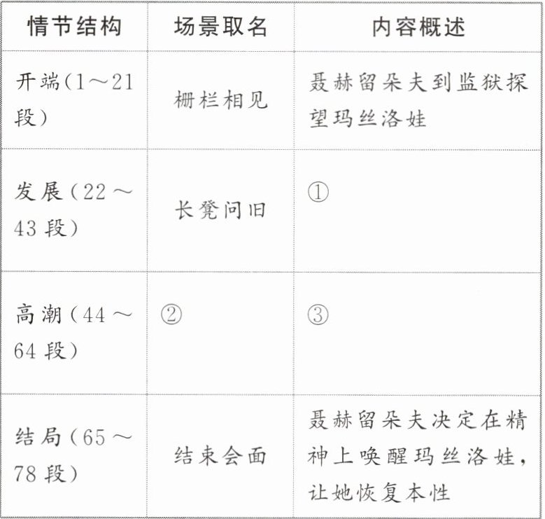 2.聂赫留朵夫因良心深受谴责而想通过拯救玛丝洛娃以赎前罪。文本是初次探监的场景。请根据文本,梳理情节,完成下表。