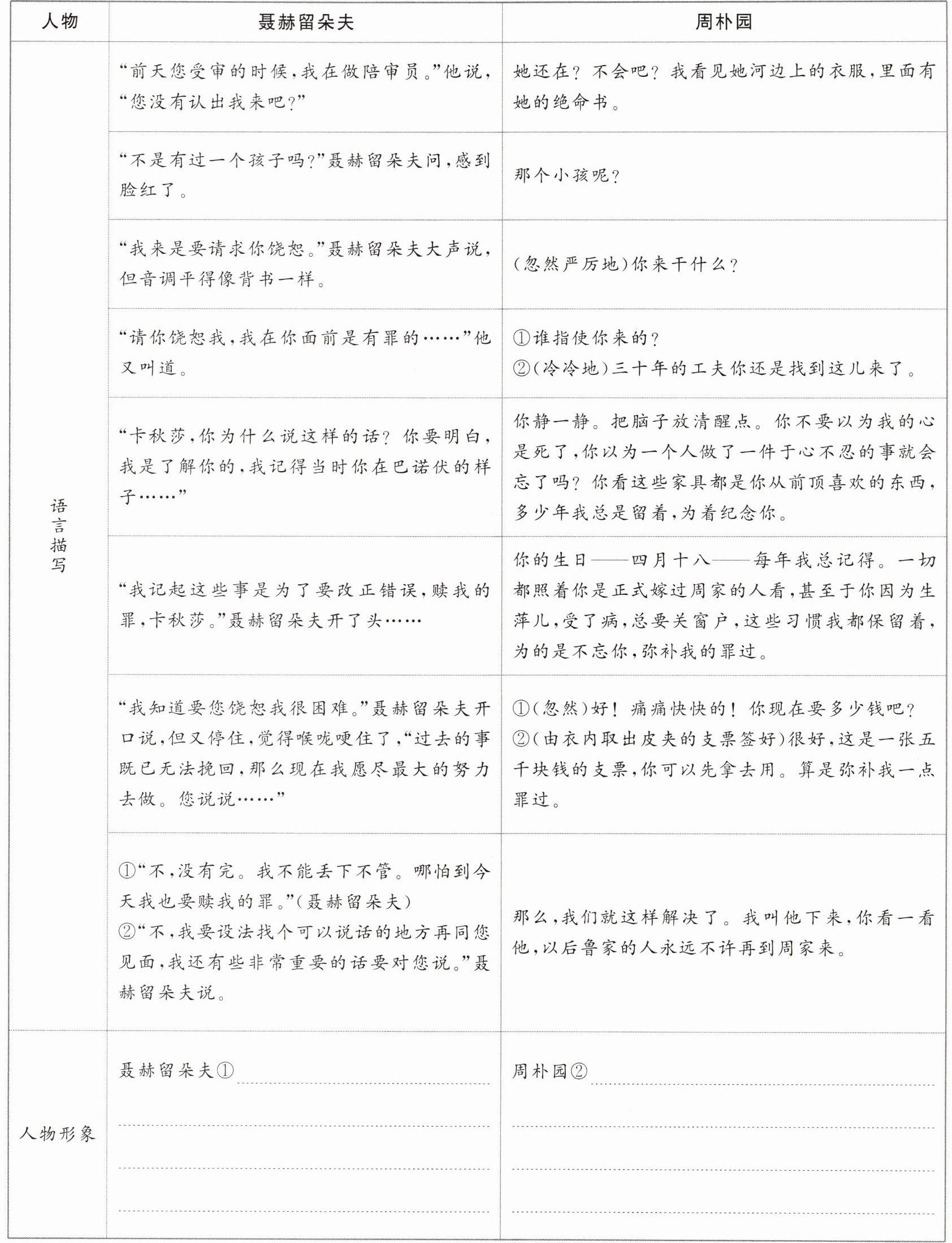 (1)两人在铁栅栏边刚刚见面,“我想见见……”聂赫留朵夫不知道该用“您”还是“你”,但随即决定用“您”。