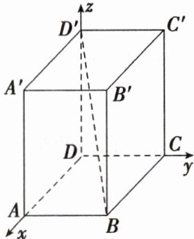 解:由已知可得,长方体顶点$A,B,A',D'$的坐标分别为$A(4,0,0),B(4,2,0),A'(4,0,3),D'(0,0,3)$.