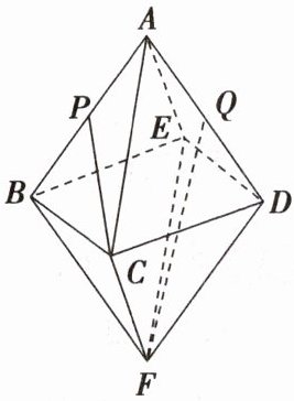 (3)正多面体也称柏拉图立体,被誉为最有规律的立体结构,是所有面都只由一种正多边形构成的多面体(各面都是全等的正多边形)。数学家已经证明世界上只存在五种柏拉图立体,即正四面体、正六面体、正八面体、正十二面体、正二十面体。已知一个正八面体$ABCDEF$的棱长都是$2$(如图),$P$,$Q$分别为棱$AB$,$AD$的中点,则$\overrightarrow{CP}·\overrightarrow{FQ}=$