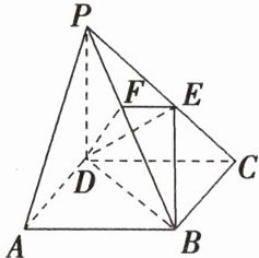 如图,在四棱锥$P - ABCD$中,底面$ABCD$是正方形,侧棱$PD\perp$底面$ABCD$,$PD = DC$,$E$是$PC$的中点,作$EF\perp PB$于点$F$。