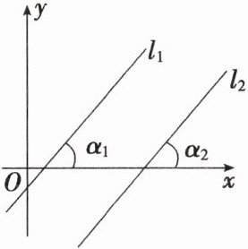 问题1.若$l_1 // l_2$,$\alpha_1$与$\alpha_2$之间的关系为$\alpha_1 = \alpha_2$;对于$k_1$与$k_2$之间的关系,当$\alpha_1 = \alpha_2 \neq 90°$时,$k_1 = k_2$,当$\alpha_1 = \alpha_2 = 90°$时,$k_1$与$k_2$均不存在.