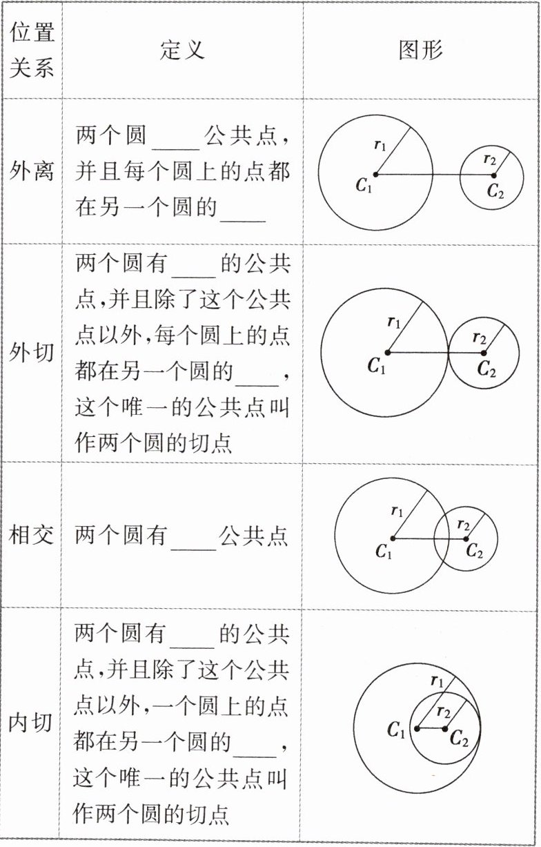1. 平面内两个不等的圆之间的 5 种位置关系