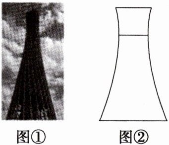 对点练 5 (新情境)单叶双曲面是最受设计师青睐的结构之一,它可以用直的钢梁建造,既能减少风的阻力,又能用最少的材料来维持结构的完整. 如图①,俗称小蛮腰的广州塔位于中国广州市,它的外形就是单叶双曲面,可看成是双曲线的一部分绕其虚轴旋转所形成的曲面. 某市计划建造类似于广州塔的地标建筑,此地标建筑的平面图形是双曲线,如图②,最细处的直径为 $ 100 \, m $,楼底的直径为 $ 50\sqrt{22} \, m $,楼顶直径为 $ 50\sqrt{6} \, m $,最细处距楼底 $ 300 \, m $,则该地标建筑的高为( )