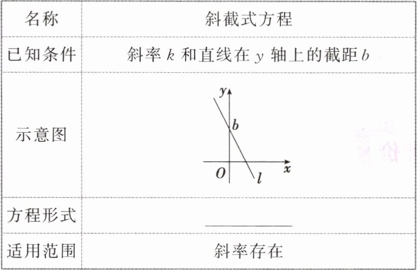 问题3. 考虑一种特殊情形:如果直线 $ l $ 的斜率为 $ k $ 且过 $ P_0(0,b) $,那么此时直线的方程如何表示?