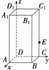 3. 在正四棱柱 $ ABCD - A_1B_1C_1D_1 $(底面为正方形的直棱柱)中,$ |AA_1| = 2|AB| = 4 $,点 $ E $ 在 $ CC_1 $ 上且 $ |C_1E| = 3|EC| $. 建立如图所示的空间直角坐标系,则点 $ B $,$ C $,$ E $,$ A_1 $ 的坐标分别为