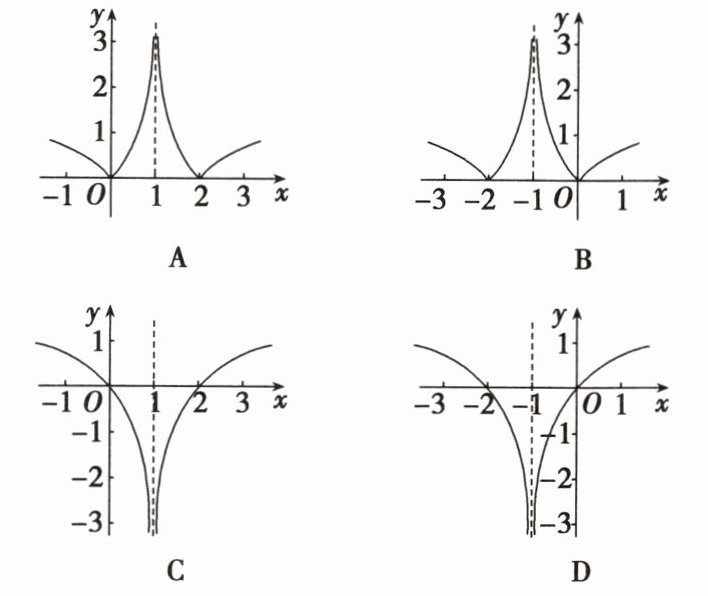(2) = |ln|1 - 2|| = |ln1| = 0,故B错误;将函数y = lnx在x轴下方图象翻折到上方可得函数y = |lnx|的图象,再将其在y轴右侧图象翻折到左侧,右侧不变,可得函数y = |ln|x|| = |ln|1 - x||的图象,进而将得到的函数图象向右平移1个单位,可得函数y = |ln|-(x - 1)|| = |ln|1 - x||的图象,故A正确。故选A。
