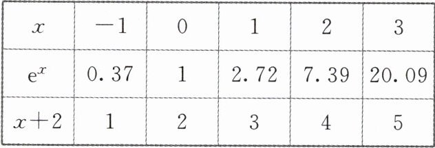 (2)根据表格中的数据,可以判断方程 $e^{x}-x - 2 = 0$ 的一个根所在的区间是 ( )