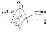 (2)法一:函数对应的方程为$\ln x+x^{2}-3 = 0$,所以原函数零点的个数即为函数$y = \ln x$与$y = 3 - x^{2}$的图象交点个数.