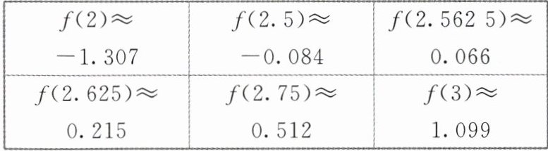 则方程 $ \ln x + 2x - 6 = 0 $ 的近似解(精确度为 0.1)可取为( )
