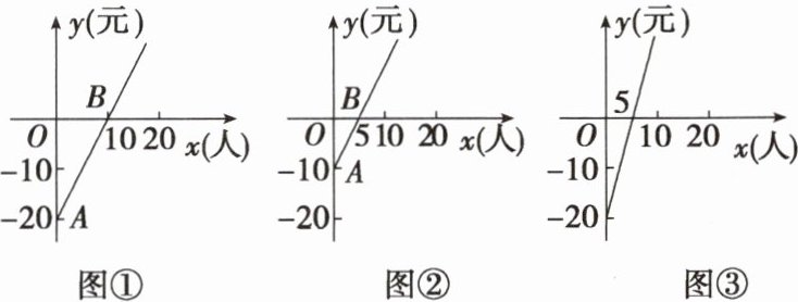 (1)点A表示无人乘车时收支差额为$- 20$元,点B表示有10人乘车时收支差额为0元,线段AB上(不包括B点)的点表示亏损,线段AB延长线上的点表示盈利.