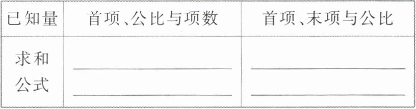 [微提醒] (1) 等比数列前 $ n $ 项和公式及通项公式中共有五个量 $ a_{1}, q, a_{n}, n, S_{n} $,这五个量可“知三求二”.
