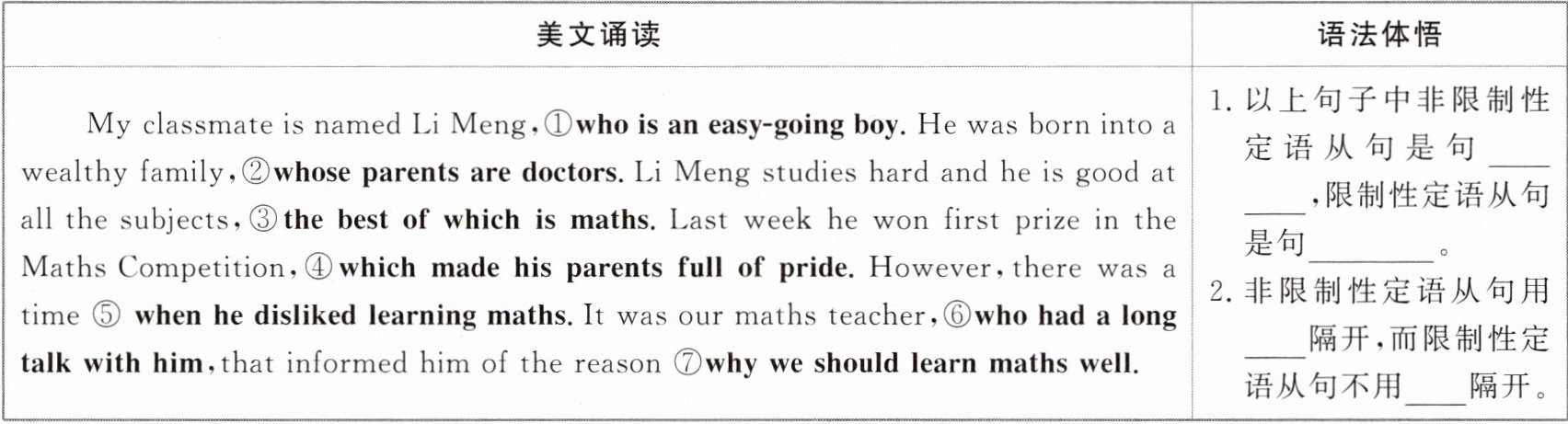 UNIT 1 Section Ⅲ 语法体悟 1.①②③④⑥;⑤⑦ 2.逗号;逗号