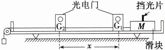 (3)当滑块通过$G_{1}$、$G_{2}$光电门时,光束被遮挡的时间为$\Delta t_{1}$、$\Delta t_{2}$,对应的速度分别为$v_{1} = \frac{D}{\Delta t_{1}}$、$v_{2} = \frac{D}{\Delta t_{2}}$,根据$v_{2}^{2} - v_{1}^{2} = 2ax$,可得加速度$a = \frac{(\frac{D}{\Delta t_{2}})^{2} - (\frac{D}{\Delta t_{1}})^{2}}{2x}$。