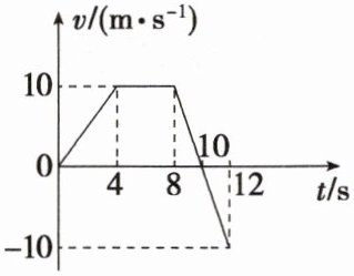 $10\sim12s$内的加速度$a_{3}=\frac{-10 - 0}{12 - 10}m/s^{2}=-5m/s^{2}$。