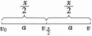 v^{2}-v\frac{t}{2}^{2}=2a\cdot\frac{x}{2}。