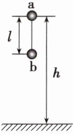 例1(多选)(2024·湖北荆门高一上学期期末)如图所示,两个小球a、b通过长为$l$的轻绳连接,现用手拿着上端的小球a由静止释放两球,释放时小球a距离地面的高度为$h$,两个小球相继落地的时间间隔为$\Delta t$,两个小球落地后不再反弹,不考虑空气阻力,下列说法中正确的是 ( )