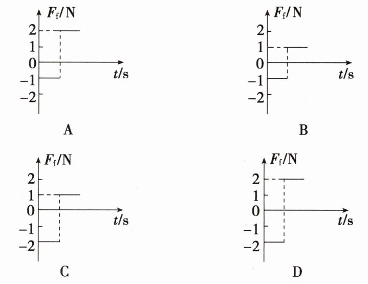 针对练. 如图所示,物体 A 的质量为 $ 1 \, kg $,置于水平地面上,物体与地面间的动摩擦因数 $ \mu = 0.2 $,从 $ t = 0 $ 开始,物体以一定的初速度 $ v_{0} $ 向右滑行的同时,受到一个水平向左、大小恒为 $ F_{0} = 1 \, N $ 的作用力,则反映物体受到的摩擦力 $ F_{f} $ 随时间变化的图像正确的是(取向右为正方向,$ g $ 取 $ 10 \, N/kg $)( )