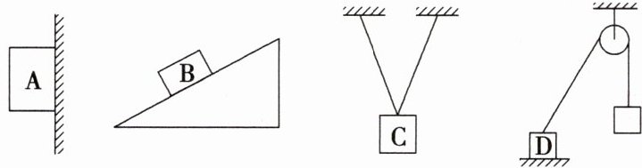 C A物体沿竖直墙自由下滑,“自由”说明物体A与竖直墙之间没有弹力和摩擦力,因此A只受重力作用,故A错误;B物体处于静止状态,受到重力、支持力、摩擦力三个力的作用,故B错误;C物体受到重力和两个绳子的拉力三个力的作用,故C正确;D物体处于静止状态,受到重力、支持力、绳子的拉力和摩擦力四个力的作用,故D错误。故选C。