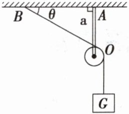 如图所示,在水平天花板的 A 点处固定一根轻杆 a,杆与天花板保持垂直。杆的下端有一个轻滑轮。另一根细线上端固定在该天花板的 B 点处,细线跨过滑轮,下端系一个重为 G 的物体,BO 段细线与天花板的夹角为 $ \theta = 30^{\circ} $。系统保持静止,不计一切摩擦。下列说法中正确的是( )