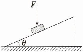 针对练 如图所示,粗糙水平面上放置一楔形斜面体,斜面体上有一小物块恰能沿斜面匀速下滑,现对小物块施加一个竖直向下的恒力 $F$,下列说法正确的是( )