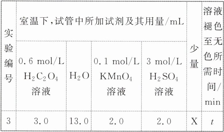 ${mol· L^{-1}· min^{-1}}$。(3)该小组同学查阅已有的实验资料发现,该实验过程中${Mn^{2+}}$对反应有催化作用,并继续进行实验探究。请你帮助该小组同学完成实验方案。所加试剂X最好选用