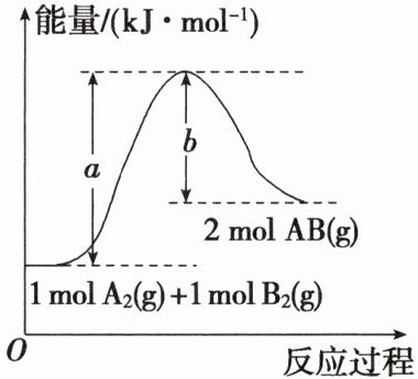 2.B 加入催化剂改变反应的活化能,但是不改变反应热,A错误;由图可知,生成物的总能量高于反应物的总能量,反应为吸热反应,B正确;a为正反应的活化能,b为逆反应的活化能,所以逆反应的活化能小于正反应的活化能,C错误;由图可知,反应吸热焓变为正值,该反应的ΔH=+(a-b)kJ/mol,D错误。
