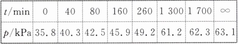 其中$NO_{2}$二聚为$N_{2}O_{4}$的反应可以迅速达到平衡。体系的总压强$p$随时间$t$的变化如下表所示$[t=\infty$时,$N_{2}O_{5}(g)$完全分解$]$
