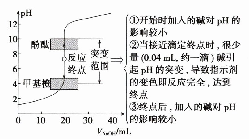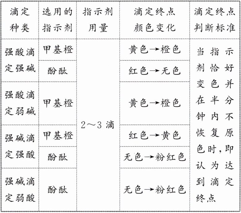 (4)不相同。酸碱恰好完全反应是指酸与碱按照化学计量数恰好完全反应,酸和碱都不剩余,此时溶液可能为中性,也可能为酸性或碱性;而滴定终点是指指示剂颜色恰好变化的点,二者不相同。酸碱恰好完全反应与滴定终点特别接近,在一般实验研究中不会造成大的误差。