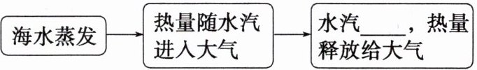 海水蒸发→热量随水汽进入大气→水汽____,热量释放给大气