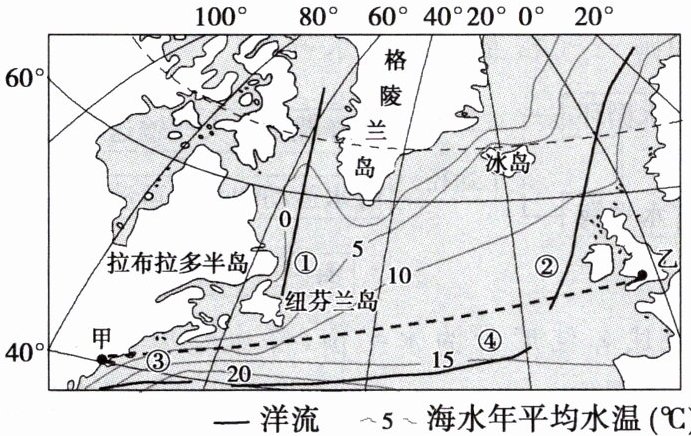 3.甲、乙港口之间的航线,途经的④洋流是( )