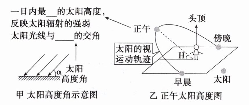 1. 某地的太阳高度和正午太阳高度有何区别与联系?