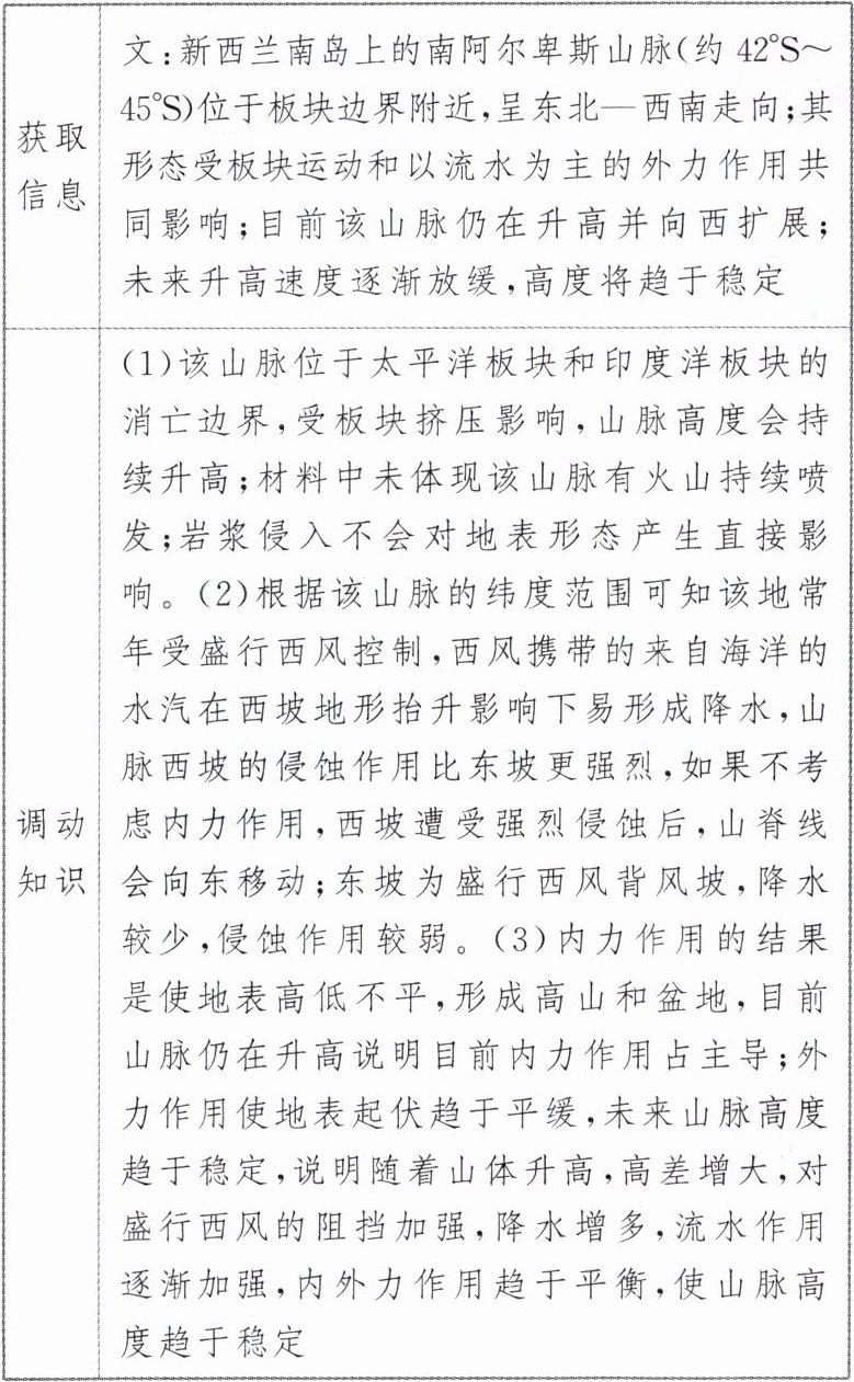 综合思维:根据板块运动及流水作用分析地表形态的变化及成因。