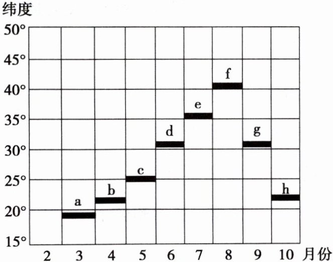 (2025·辽宁沈阳期中)下图为我国东部锋面雨带正常年份位置变化示意图。读图,回答1~2题。